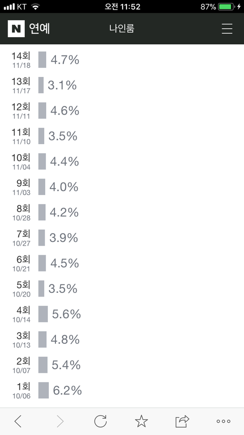 바로전작보다 괜찮게 나왔네 심지어 마지막회가 5.2였는데