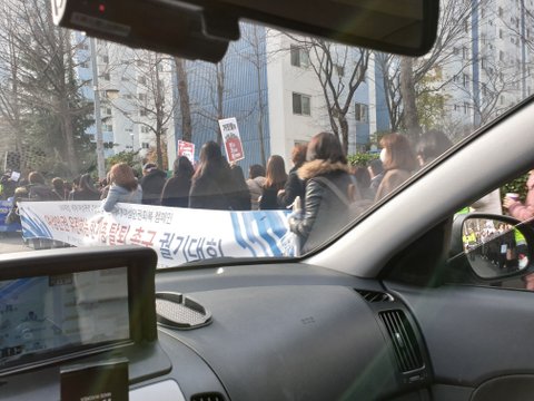 도로 한쪽을 막고 무슨 궐기대회라며 걷고있던데