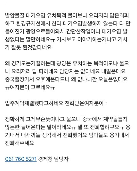 광양에서 입막음한다고 기사도 안내고 민원 넣는 곳도 다 막아놨어