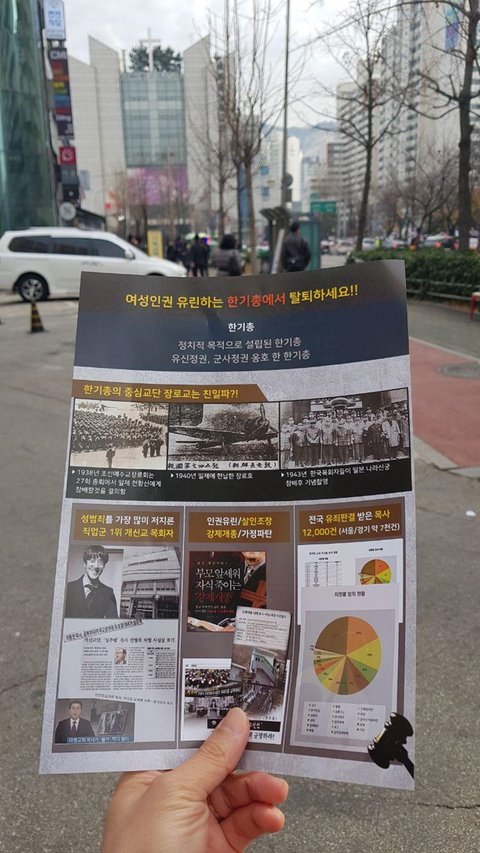 또한 그분들이 노원역 근처의 유명한 꽃동산교회 주변에서 한기총의 그루밍, 성폭행, 신사참배, 강제개종, 인권유린 등의 범죄사실을 알리면서 질서있게 행진하는 모습에서 이 시대를 살아가는 똑같은 여성으로서 자랑스러웠고, 또한 이 일을 계기로 한기총의 부패를 더 자세히 알게되어 그 동안의 궁금증이 많이 풀리게 되었습니다.
