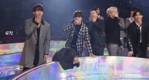 핀조명 7개인데 가운데 자리는 일부러 비워놓고 무대함은광의 목소리가 흘러나온 후 멤버들이 은광 이 자리를 바라보는데 너무 울컥했어ㅠ비투비 멜뮤 첫 탑텐 수상도 축하해!!!