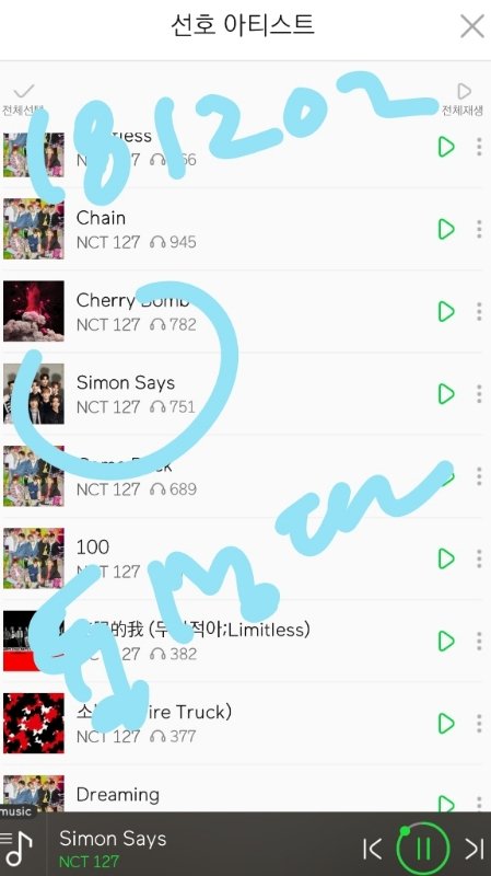 음원발매일부터 스밍한 사이먼세즈 포함 수록곡 누적횟수