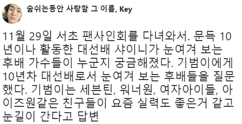 샤이니 키가 최근 눈여겨 보고 있다는 아이돌들.jpg
