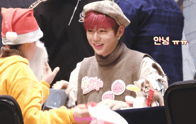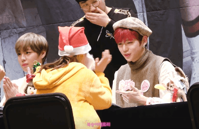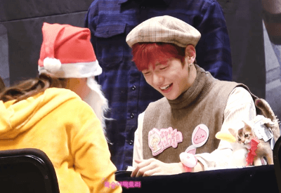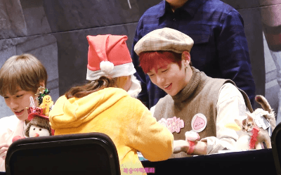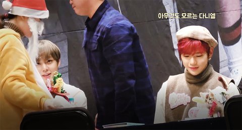 앞에 산타 분장하고 나타난 팬(워너원 리얼리티에서 다니엘이 했던 분장임 ㅋㅋㅋ)