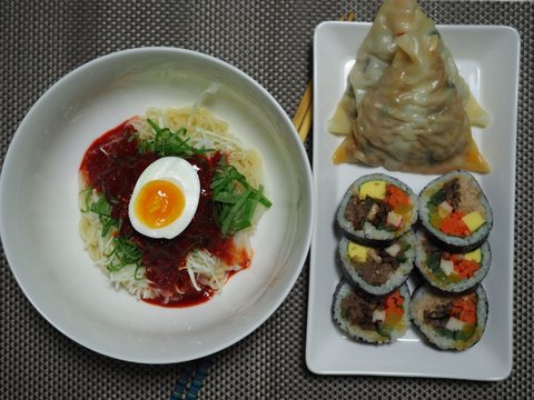 김밥하고 만두랑 같이 먹어 더 맛있는 면사랑 쫄면?