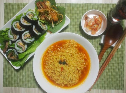 삼겹살 김밥을 곁들이고 한국인의 매운맛을 살려낸 신라면?