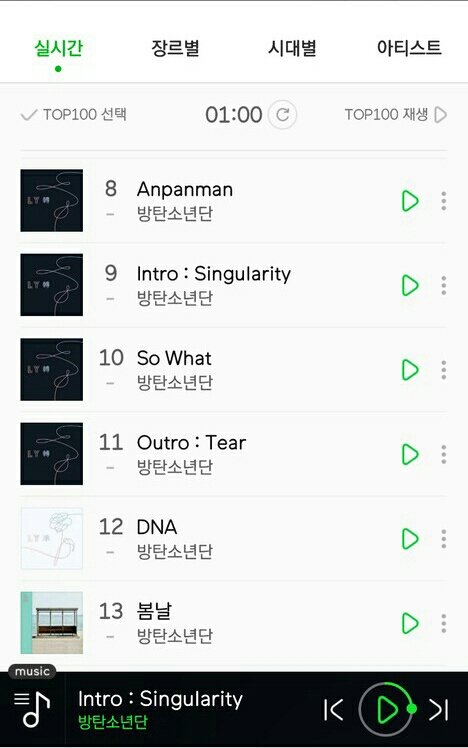 솔직히 이젠 방탄 탈아이돌급이라서 그냥 일반 대중도 방탄 신곡내면 한번씩은 들을정도가 됨ㅇㅇ 아무리 아이돌은 거른다고 하지만 방탄은 그냥 아이돌이라고 하기엔 너무 유명해져버림 게다가 팬덤 화력 오져서 저번에 fake love로 컴백했을때 1년도 넘은 DNA랑 봄날도 순위 10권으로 올릴정도