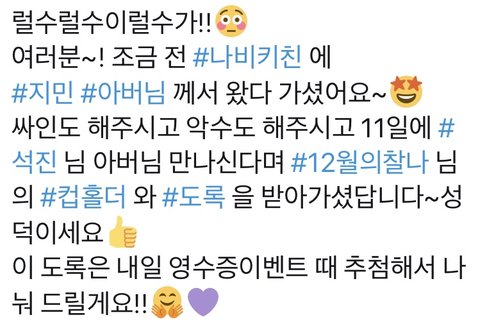 지민이아버님이 석진이생일파티카페 오셨대