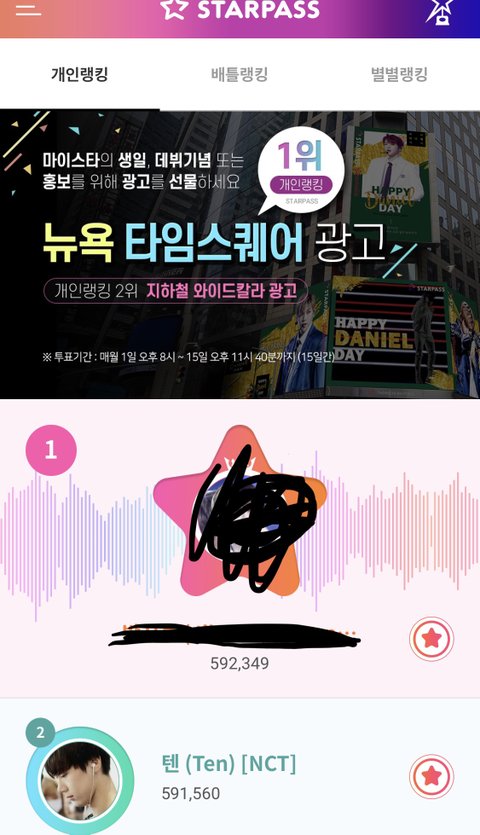 2등으로 밀렸어ㅠㅠ 더쇼 사전투표하는 스타패스 앱에서 할 수 있으니까 다들 해줘 천 표도 차이 안나!