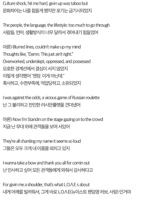 가수가, 한국 가수가 되고싶다고 먼 타국까지 날아와 준 아론이 고마워서..