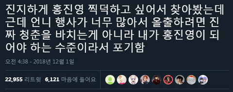 이건 너무 웃겨가지고 올출하려면 홍진영이 되어야 하는 수준이랰ㅋㅋ