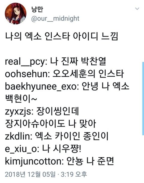 나의 엑소 인스타 아이디 느낌