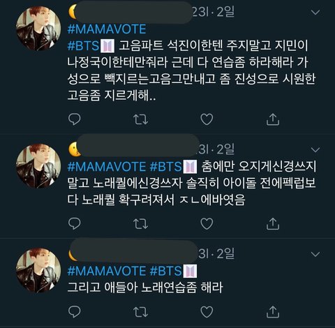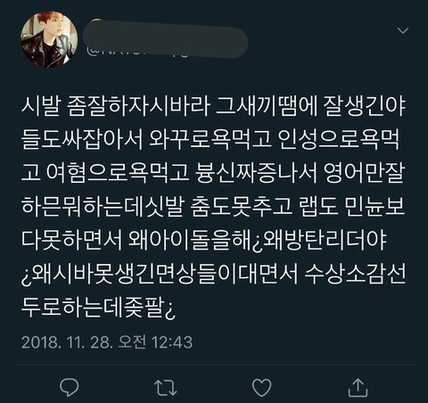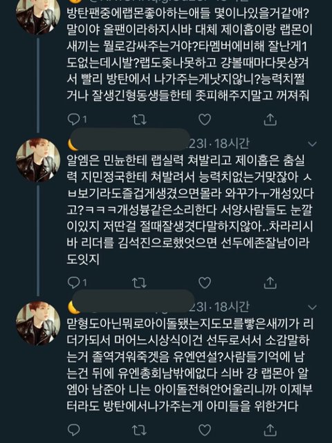 제니 카리나 주어만 바꾸는 걔가 엔터판 분탕 원인임 걔가 리사 로제 윈터 다 돌려까고 댓글에 홍은채 선글라스짤로 시작해서 릇 슴퀴 트와..