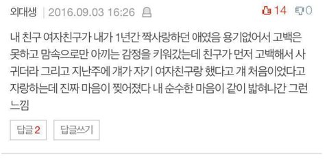 아니 저 댓글쓴이 친구라는애 진짜 개싫지않냐 저런사람들이 도대체 얼마나 많은건지 감이안옴... 자기 여친이랑 어디까지 했는지 여친이 첨인지아닌지 도대체 왜 말하고다니는건데 왜? 남자들아 도대체 왜그래????