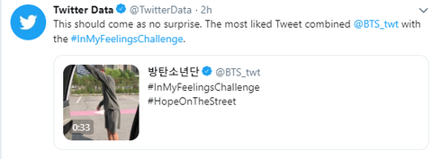 올해 가장 많은 '좋아요'를 받은 트윗