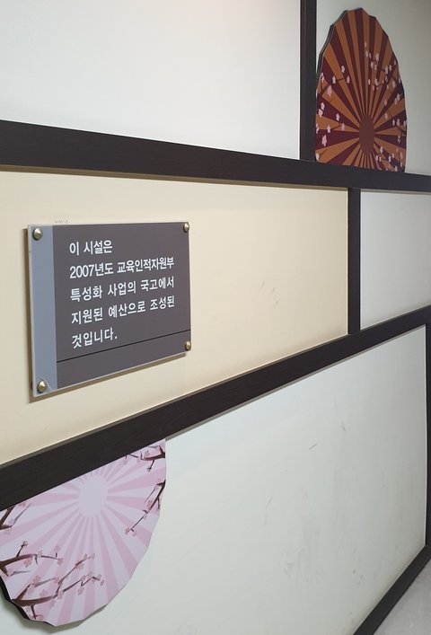 아무리 일본 관련 어학실이지만 우리 민족에게 뼈아픈 기억을 남겨준 일제의 전범기인 욱일승천기문양을 2007년 교육인적자원부의 예산으로 복도환경을 조성한 이 학교가 이해되지 않아서 글을 작성했습니다.