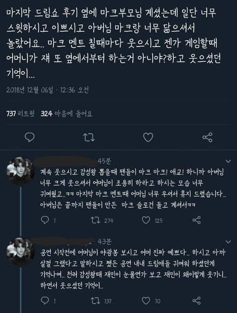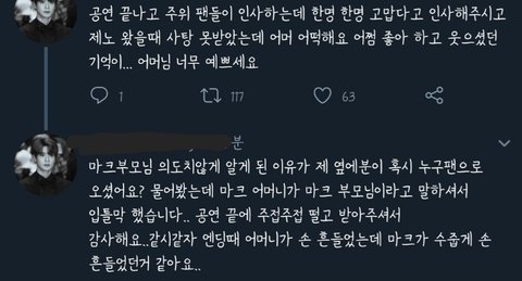 마크 어머니 마지막 마크 멘트 때 우셨대