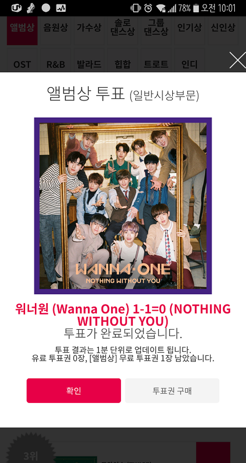 부분별로 하루 두번 무료투표니까 잊지말고 꼭! 투표해요 우리~