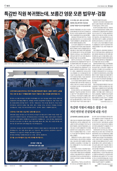 CBS를 통해 신천지를 반국가, 반사회, 반종교고 허위 보도를 내보내 법원에서 정정보도를 판결받았는데요