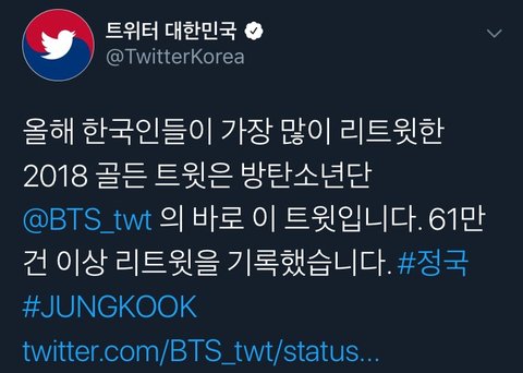 2018년 한국인이 가장 많이 리트윗한 골든짹