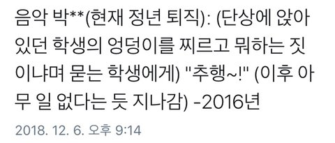 교사라는 권력 아래 재학생들이 생기부, 내신 때문에 제대로 항의를 못하고 있는 상황이야