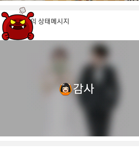 여느때처럼 서로 섹드립과 농담을 주고받다가 카톡 프사를 눌렀습니다. 아시다시피 프사를 누르면 프사와 배경사진, 상태메시지가 나오는 화면이 뜨죠. 그 우측 상단에 있는 아이콘을 누르면 역대 프사, 배경화면, 상태메시지가 쭉 뜨면서 스크롤을 내려보면 됩니다. 천천히 보고 있는데 결혼사진과 같은 실루엣이 있는 상태메시지가 나왔습니다.