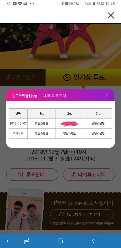 근데이렇게쉽고 무료로 6표나 얻을수있는데 투표안하는 아미는 없겠지?ㅜㅜㅜ 화이팅!!!!