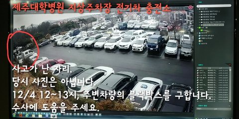 시간은 12월4일 12~13시 사이, 사고가 난 정확한 장소는 제주대학병원 지상주차장 전기차충전소 입니다.