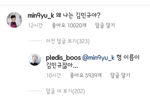 그나저나 승관이 ㅋㅋㅋㅋㅋㅋ 다 형이라고했는데 민규만ㅋㅋㅋㅋ 김민규 ㅋㅋㅋㅋㅋㅋㅋㅋㅋㅋ 역시 방송고 같은학년 ╋ 둘이내년에해외여행단둘이가기로약속한 사이 ㅋㅋㅋㅋ