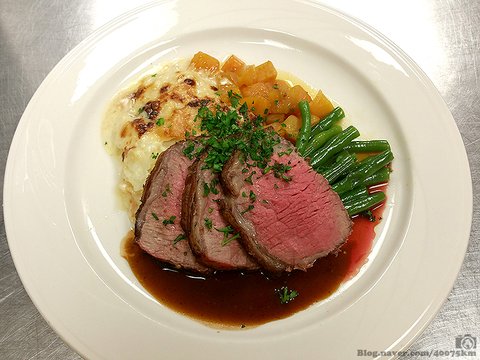 와인 판매상이라는 이름답게 레드 와인을 듬뿍 넣어서 만드는 소스인데, 집에서 와인 소스 몇 번 만들어 먹으면서 실망했던 적이 있어서 좀 걱정이 되기도 했지요. 그런데 데미글라스를 제대로 만들어 넣으니 고기 소스의 맛에 깊이가 더해지면서 와인에 밀리지 않는 존재감을 보여주네요. 역시 뭐든지 시간과 노력을 제대로 들여야 제 맛이 나는 법입니다.