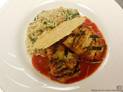 필라프를 곁들인 가지 롤라티니 (Rollatini).