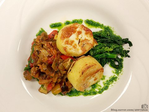 폴렌타를 곁들인 라따뚜이.