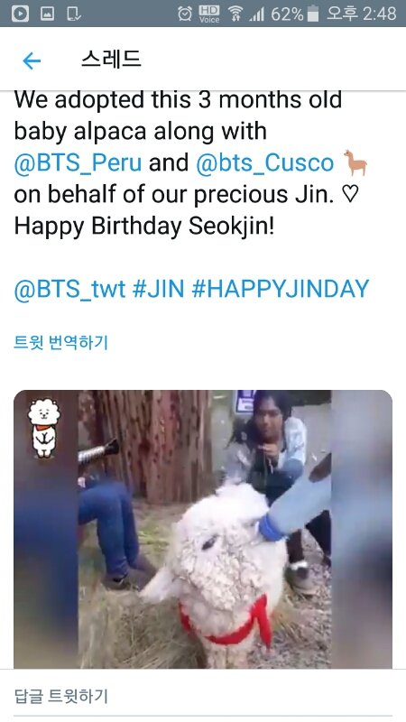 우유먹이는 영상ㅋㅋㅋㅋ https://twitter.com/SeokjinPeru/status/1071145381008957440?s=19