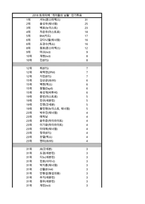 게이들이 뽑은 남돌들 순위래 ㅋㅋㅋㅋㅋ