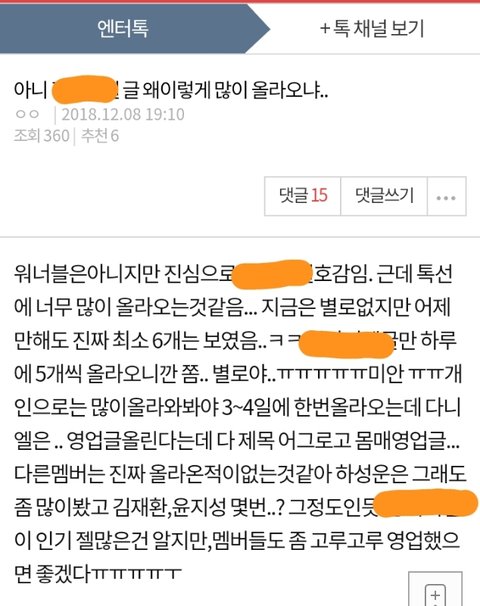 그분팬덤 글이 더 많지 어딜봐서 많다는거임?ㅋㅋㅋㅋㅋㅋ 제일 영업글 안 올리는 팬덤인데 제발 영업글 좀 올렸으면 좋겠다 하성운은