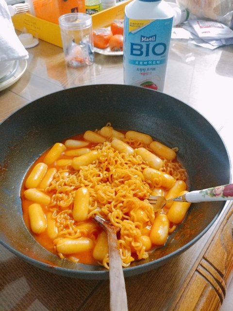 미남들을 보며 즐기는 치떡라볶이...^^ 난 행복해