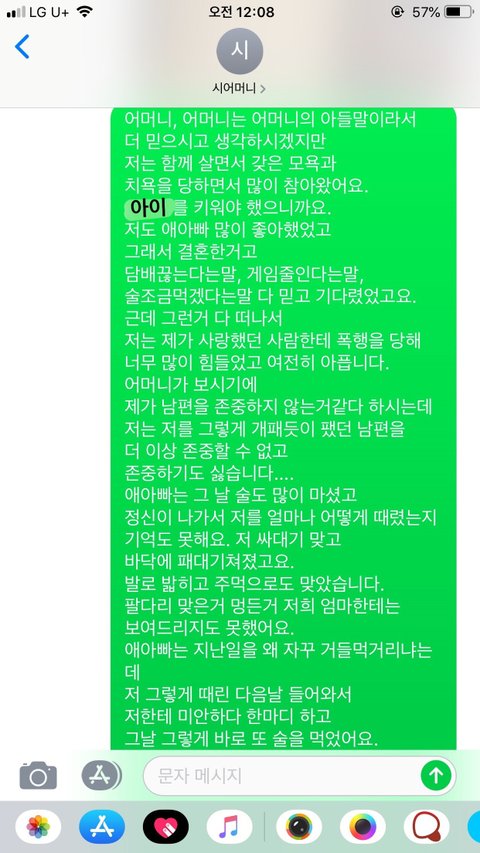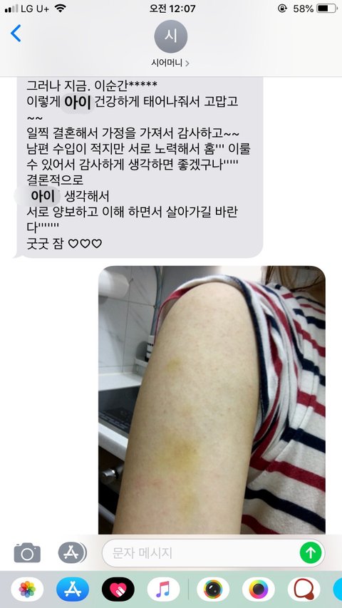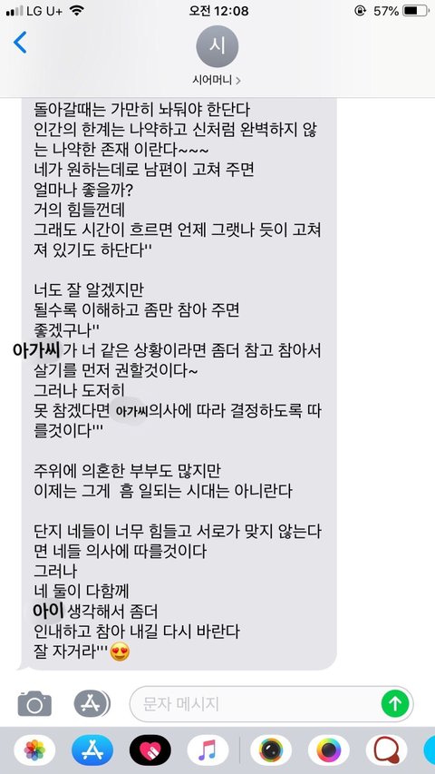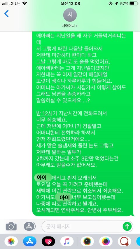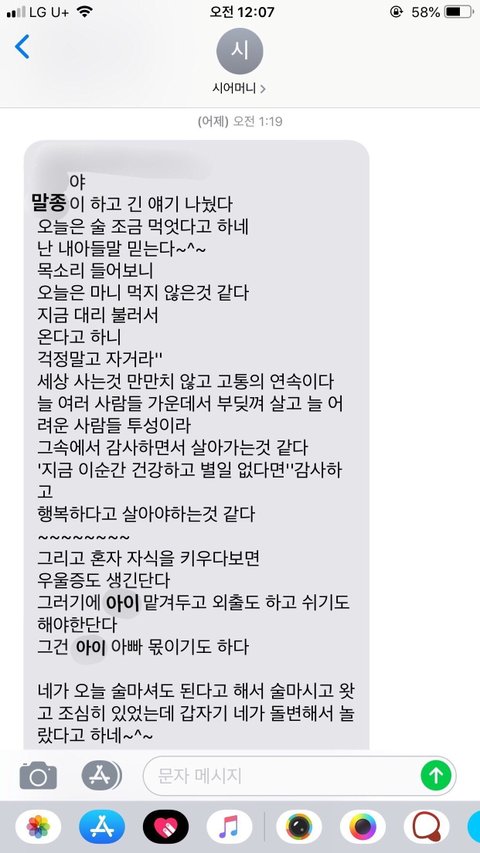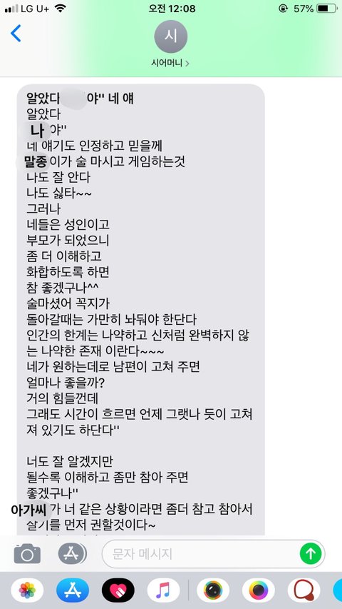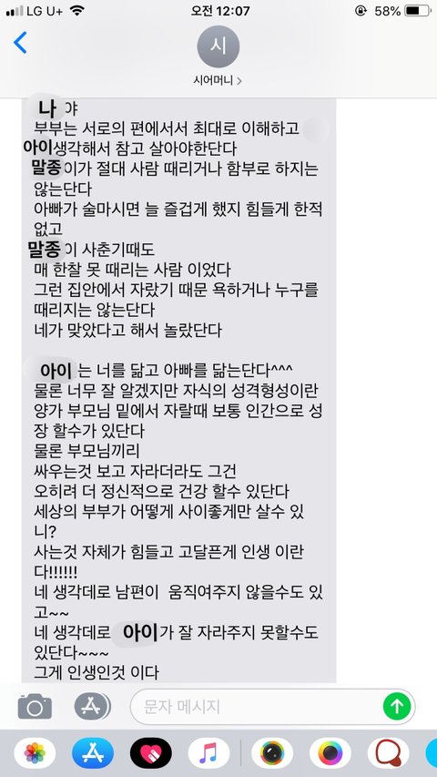그리고나서 시간이 좀 지나고 시어머니한테 문자가 왔습니다.