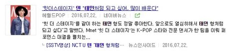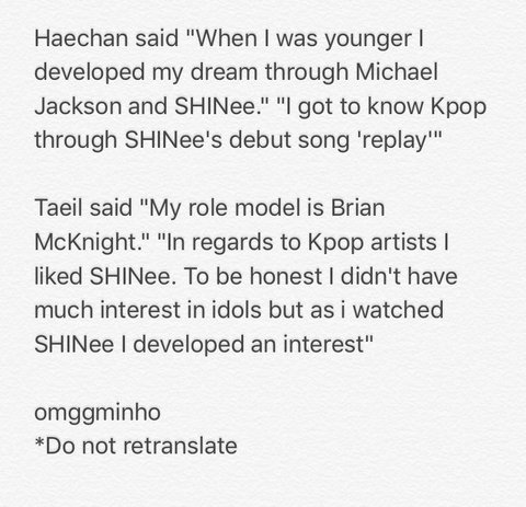태일 "케이팝 아티스트 선배님들중에서 샤이니 선배님을 존경합니다. 사실 전 아이돌에 흥미 없었지만 샤이니 선배님들을 보고 아이돌에 대해 흥미가 커졌어요."