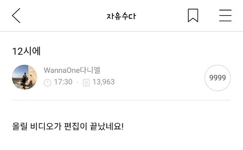 강다니엘 12시 예고!ㅠㅅㅠ