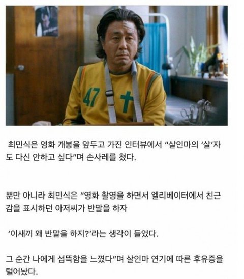 이거랑 약간 다르지만 배우김재욱님도 보이스 촬영하면서 살인마역할 때문에 드라마끝나고 후유증심해서 심리치료였나 그거받으러다니시고 손더게스트때도 무서우셔서 그런진 모르겠는데 성당 다닌다고 하네요