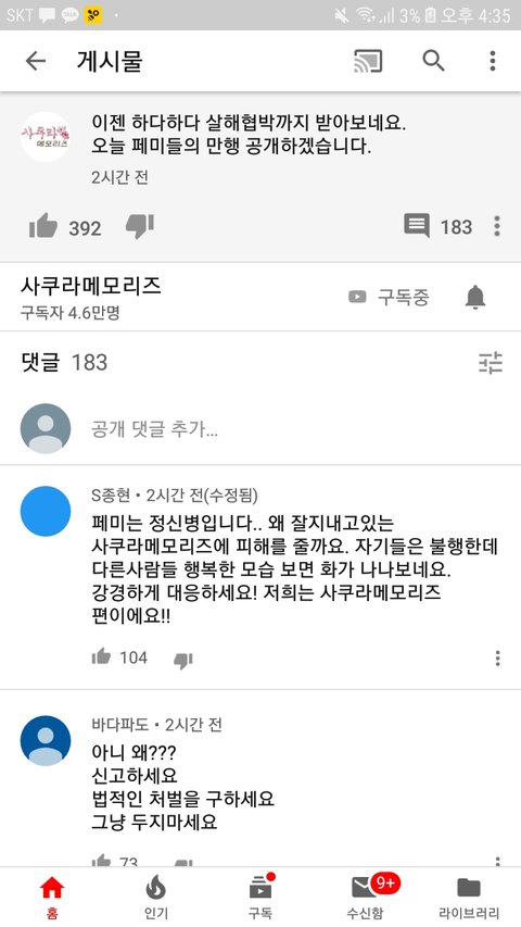 일본여자와 결혼해서 소소한 일상을 올리는 유튜버에게 온갖테러를 일삼음 이제는 하다하다 살해협박까지 ㄷㄷㄷ