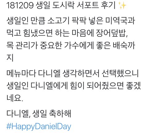 오늘 강다니엘 서포트 들어갔던 도시락메뉴래