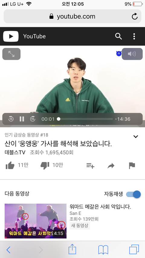 유튜브에 데블스tv 산이 웅앵웅 치면 나올거야!!