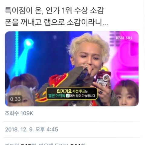 오늘자 특이점이 온 인가 1위 수상소감(tmi)(공감성수치주의)