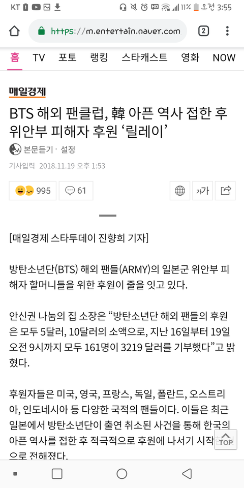 이 사건이 있기 전에는 위안부 기부 금액중 해외의 기부가 하나도 없었다고 하더라구