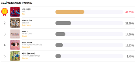 방탄소년단 데이식스 트와이스 마마무 세븐틴 워너원 등