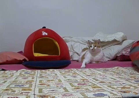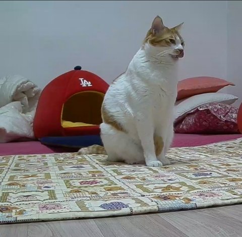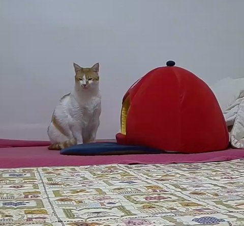 혼자 사료와 물을 먹고 세수를 하며 퇴근하는 집사 기다리고 있음.