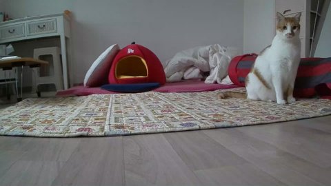 도칠이는 아침마다 출근하는 집사를 방해함.