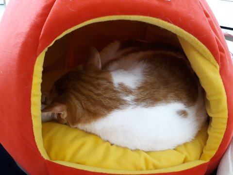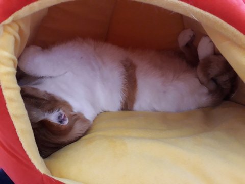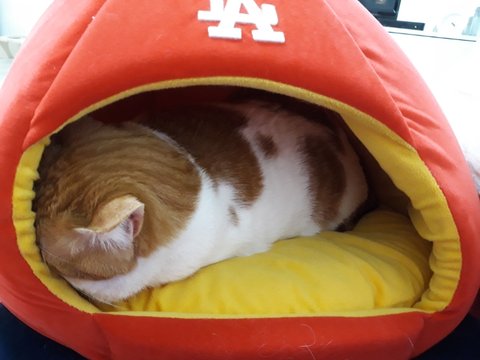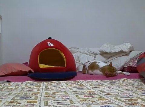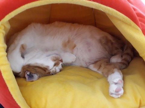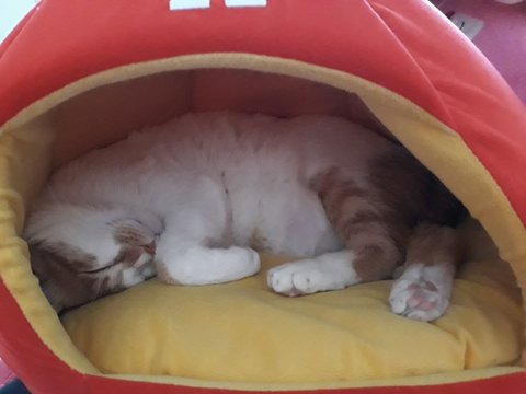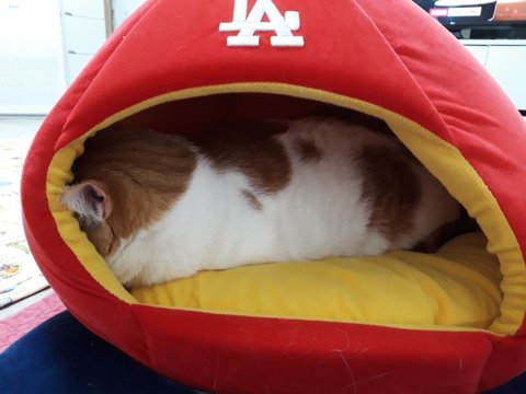 집사 발과 장난을 치다 잠들어버리기도 함.