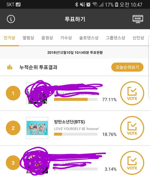 큽마 어플자체가 해외투표인데 거기서 차이가 어마무시 하네.